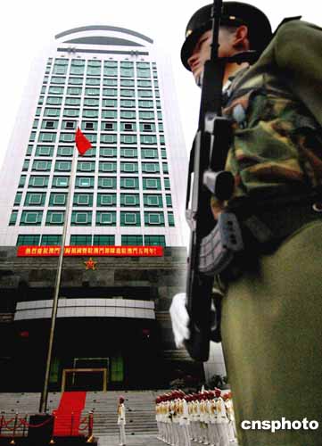 解放軍駐澳門部隊20日上午莊嚴舉行升旗儀式,慶祝澳門回歸祖國五周年。作者:宋吉河