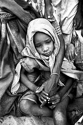 聯(lián)合國(guó)兒童基金會(huì)稱,這張由英國(guó)攝影家比拉斯·戴爾所拍攝的照片,通過(guò)女孩面部絕望的表情生動(dòng)地反映了蘇丹的難民逃亡時(shí)的悲慘狀況。