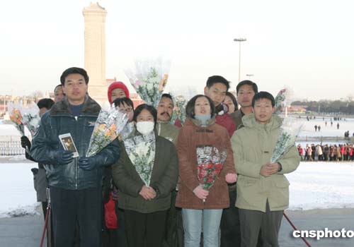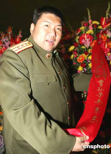 毛澤東的孫子毛新宇代表父母、妻子和2003年12月26日出生的兒子毛東東(毛澤東的曾孫)到北京毛主席紀(jì)念堂敬獻花籃。作者:任晨鳴