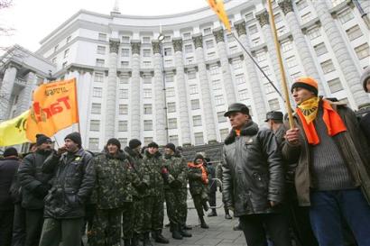 亞努科維奇的發(fā)言人捷爾納夫斯基28日曾宣布,亞努科維奇結(jié)束大選休假,恢復(fù)行使總理職權(quán),并將于29日主持召開烏克蘭政府會議。當(dāng)晚,尤先科在基輔市中心獨(dú)立廣場上發(fā)表演說,鼓動(dòng)其支持者包圍政府大樓,以阻止亞努科維奇在29日上午主持召開政府會議。尤先科還要求其支持者參加他可能在獨(dú)立廣場舉行的“公開就職儀式”。新華社記者29日上午看到,仍有約200名尤先科支持者在政府大樓前聚集。