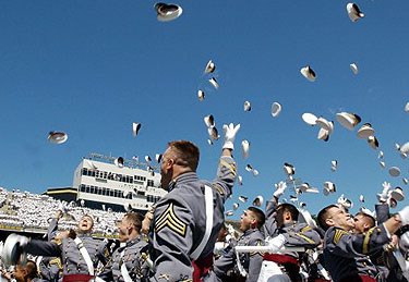 經過數年的苦讀與磨煉之后,美國著名的西點軍校的畢業生終于“解放了”。圖為2004級畢業生在參加完他們的畢業典禮之后,紛紛將畢業帽甩向半空中,慶祝他們走出校門,踏上未來的“將軍之路”。