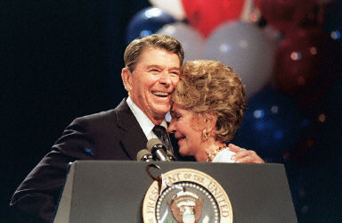 曾經是好萊塢電影明星的里根,一九三七年到一九六四年期間,共拍攝了五十一部影片,多為喜劇片和情感片,后當選加州州長,開始從政之路--這條路正被動作巨星施瓦辛格重蹈。風度翩翩、明星出身的總統使得里根在任上受到不少人的擁捧,但也受到不少人對他執政能力的質疑。他曾被民主黨人譏笑為“親切的傻瓜”,但里根一九八九年一月以七十八歲高齡離開白宮時,卻成為離任時民望最高的現當代美國總統。