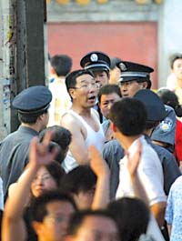 昨天16時50分,離演出開始還有10分鐘,地壇方澤壇內就涌入了數百名搖滾樂迷。17時,主辦方突然抱歉地向觀眾解釋,為了不影響高考,演出延遲30分鐘舉行。20多分鐘后,在焦急地等待中,這場公益“搖滾大餐”終于開場。包著紫白相間頭巾、戴著墨鏡的瘦人樂隊主唱戴秦一亮相,就引來臺下觀眾一陣陣夾雜著尖叫和口哨聲的熱烈吶喊。戴秦一口氣唱了兩首勁歌,精彩紛呈的表演和震耳欲聾的音樂讓臺下的歌迷叫得聲嘶力竭。