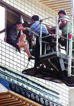 現場目擊“床單斷裂,逃生者半空掉下”