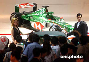 六月十日,二零零四北京國際車展在北京中國國際展覽中心正式開幕,由于中國將于年內舉辦F1賽事,一些外國廠商紛紛推出自己的方程式賽車吸引中國觀眾。中新社記者:武仲林