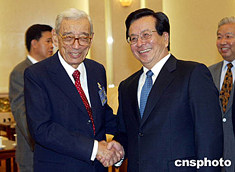 中國國家副主席曾慶紅六月十五日在北京人民大會堂會見前來出席“和平共處五項原則國際研討會”的聯合國前秘書長加利。中新社記者:毛建軍