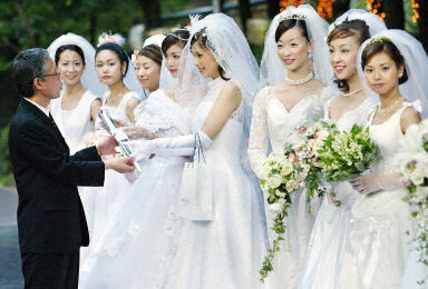 日本東京六月十五日舉行一年一度的“婚紗大賽”,六十余名美容師、藝術(shù)家在化妝、發(fā)型、服飾設(shè)計等方面一較高下。