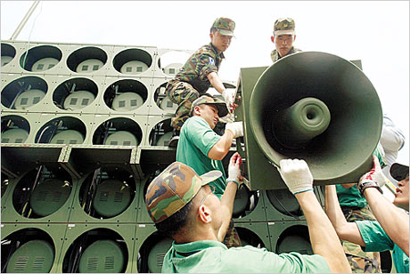 韓國在當天上午10時首先撤掉了京畿道坡州市交河面某部隊的擴音器,并在西部前線地區撤掉了5個擴音器。