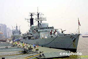 6月11日上午,由英國海軍“埃克塞特”號導彈驅逐艦和“灰色漂泊者”號補給艦組成的艦艇編隊,抵達上海海軍揚子江碼頭,對上海進行為期5天的友好訪問。作者:潘亞萍