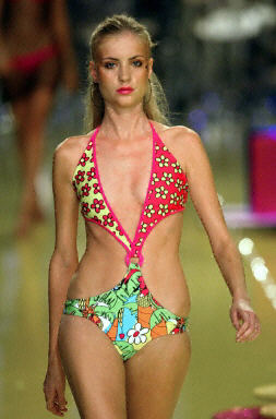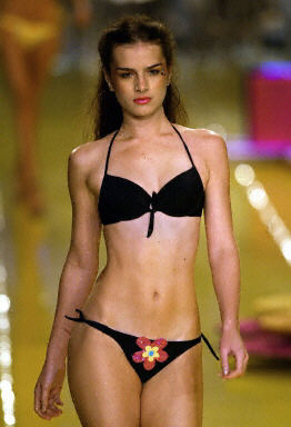 6月22日,在巴西圣保羅時裝周上,模特們展示了設(shè)計師Poko Pano設(shè)計的性感比基尼。