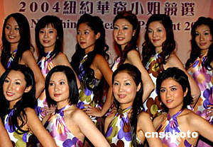 中新網紐約6月22日電(記者 趙海燕)當地時間六月二十二日,入圍二零零四年紐約華裔小姐競選初賽的二十四名佳麗首次公開亮相。