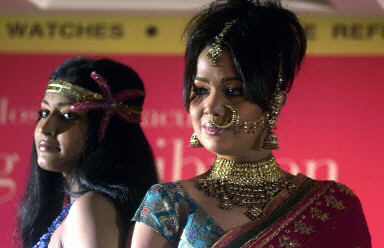 6月24日,一位模特正在印度加爾各答的一個時裝秀上展示印度最流行的新娘飾品。
