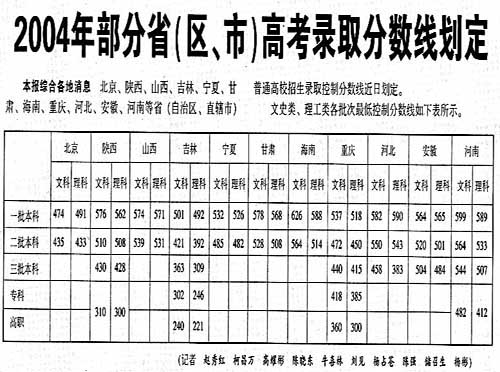 中新網6月26日電 據《中國教育報》綜合各地消息:北京、陜西、山西、吉林、寧夏、甘肅、海南、重慶、河北、安徽、河南等省(自治區、直轄市)普通高校招生錄取控制分數線近日劃定。