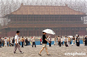 六月夏季,北京故宮博物院乾清門內(nèi)西側(cè)系列旁殿腳手架林立,故宮百年大修工程正在進(jìn)行之中。故宮于1420年建成,此次維修是自1911年辛亥革命以來近百年間,對(duì)故宮進(jìn)行的最大規(guī)模的維修。中新社記者:鄒憲