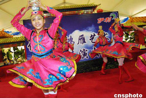 七月十日,二○○四首屆上海國際少年兒童文化藝術節在一片歡慶聲中拉開帷幕。來自世界各地的小朋友歡聚一堂載歌載舞歡度節日。中新社記者:湯彥俊