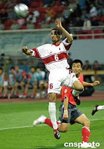 下半場雙方易地再戰,志在必取的韓國人發動了更為瘋狂的進攻,僅僅開場一分鐘李東國就在約旦隊禁區內摔倒,主裁判并未理會。此后,約旦隊采取了全面防守的戰術,力求保住平局。韓國隊在對手門前不斷制造殺機,無奈約旦隊剛剛年滿二十二歲的年輕門將沙費表現實在神勇,接連為本隊化險為夷。