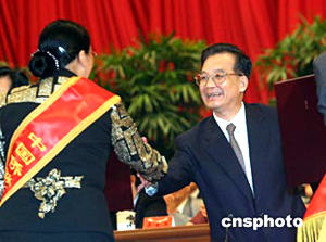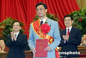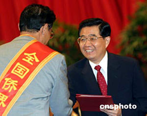胡錦濤等黨和國家領(lǐng)導(dǎo)人為受表彰的先進(jìn)集體和先進(jìn)個人的代表頒發(fā)了榮譽(yù)證書和獎牌。