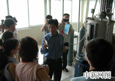 “網(wǎng)上河北行”采風團參觀訪問秦皇島經濟技術開發(fā)區(qū)中的華博晶體技術有限公司,該公司抓住以藍寶石為襯底材料的藍色、綠色和白色LED和LD產業(yè)快速發(fā)展契機,目前已發(fā)展為國內最大的藍寶石生產基地。圖為該公司負責人向記者們展示產品加工過程。(秦欣攝)