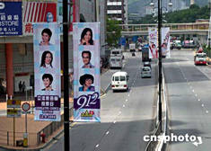 香港第三屆立法會選舉22日開始接受提名,為期兩周,到8月4日截止。圖為有關立法會選舉宣傳海報在公路上懸掛,鼓勵已登記的選民投票。作者:譚達明