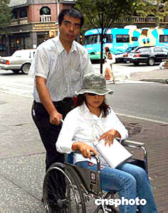 趙燕由司機(jī)用輪椅推送前往律師樓填寫“紐約州犯罪受害人福利申請(qǐng)表”。中新社記者:趙海燕