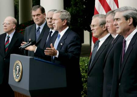 在美國(guó)多位安全部門(mén)高官的陪同下,布什當(dāng)天在白宮的新聞發(fā)布會(huì)上稱(chēng):“我們國(guó)家正面臨危險(xiǎn),我們正在盡一切可能對(duì)抗危險(xiǎn)。”
