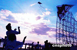 雙休日,近百名影迷來到閩江畔,滿懷喜悅放飛印有“蜘蛛俠”圖案的風(fēng)箏。時下,美國大片《蜘蛛俠2》在福州各大影院上映,受到眾多青年觀眾的喜愛。作者:劉可耕