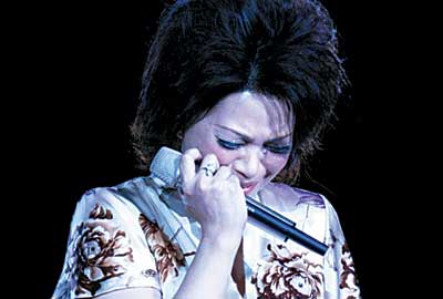 比較讓觀眾激動(dòng)的環(huán)節(jié)是最后的點(diǎn)唱部分。《出塞曲》、《忘不了》等觀眾網(wǎng)上投票選出的蔡琴最經(jīng)典的歌曲被現(xiàn)場(chǎng)演繹。蔡琴還拿出了貼滿黃金的金話筒,表示:“沒有實(shí)力的人,是沒資格站在這個(gè)話筒前面的!”十點(diǎn)鐘左右,蔡琴唱了五遍《恰似你的溫柔》,演唱會(huì)在她的哭泣中結(jié)束。(記者郝曉楠)