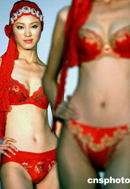 近日在北京舉行的旨在展示中國當地內衣發展趨勢的時裝秀上,T型臺上盡現東方嫵媚新視點。
