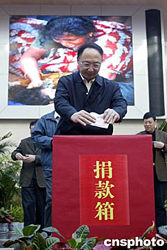 一月五日,中國國家體育總局各部門領導、職員以及各個項目運動員代表在北京國家體育總局舉行向東南亞受災國家人民捐款活動,國家體育總局局長劉鵬在捐款箱前捐款。中新社記者:盛佳鵬