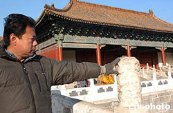 | 北京太廟戟門前金水橋防風(fēng)化保護(hù)工程日前完工。經(jīng)過幾百年的風(fēng)吹日曬和酸雨的侵蝕,太廟戟門前金水橋的部分欄板和望柱出現(xiàn)不同程度的裂紋,風(fēng)化嚴(yán)重地方甚至出現(xiàn)整體疏松現(xiàn)象。為此,文物部門采用防風(fēng)化、耐老化等性能最好的化學(xué)材料,對此石質(zhì)文物進(jìn)行了化學(xué)保護(hù),并更換了部分雕龍漢白玉望柱(圖)。太廟位于紫禁城的左前方,建于1420年,是皇宮外朝重要組成部分,和中國目前僅存且保存最完整、規(guī)模最大的皇家祭祖建筑群。此次工程也包括太廟犧牲所的修繕,總用資100萬元人民幣。中新社記者:鄒憲