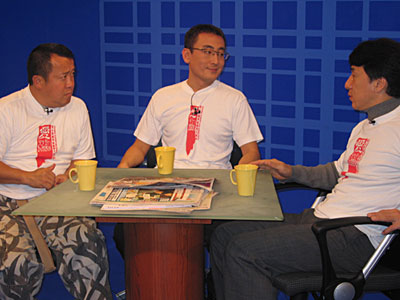 香港演藝人協會永遠榮譽會長成龍,會長兼大匯演召集人曾志偉,今日抽空座客鳳凰衛視中文臺“鏘鏘三人行”節目,與主持人竇文濤暢談此次大匯演的最新籌備情況,并同時為籌款活動發出愛心呼吁。