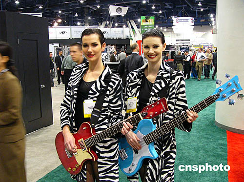 圖為展會上由參展各企業(yè)聘請的美女推銷員。
