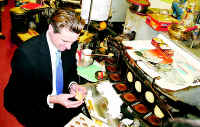 中新網1月12日電 據世界日報報道,舊金山市長紐森10日拜會華埠,并在華埠吃越南粉、嘗人參、為顧客整理頭發,還親手做了兩個幸運簽餅。