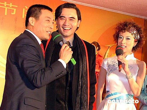 第七屆中國長春電影節1月12日晚在長春落幕,眾多明星出席當晚的頒獎晚會。圖為擔任頒獎嘉賓的香港影星趙文瑄(中)和主持人。作者:吳兆飛