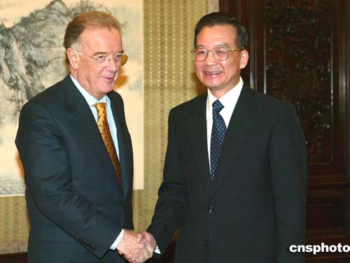 溫家寶說,中國政府高度重視發展雙邊經貿關系,愿進一步擴大和提高中葡經貿合作水平,雙方還可充分發揮各自優勢,共同開拓國際市場。
