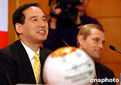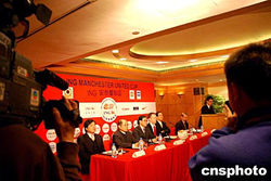 由ING安泰人壽保險冠名贊助的“安泰曼聯杯”足球賽,將在7月于香港舉行,1月17日,香港足球總會及贊助商召開記者會,公布英超聯勁旅曼聯與香港足球隊的賽事。作者:洪少葵