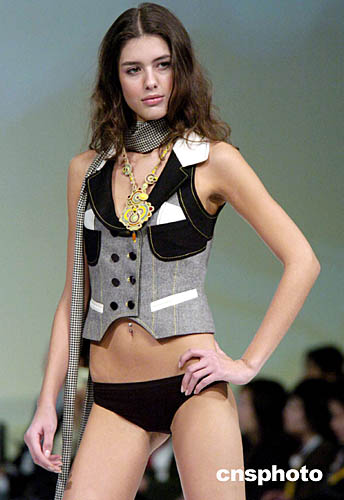 1月19日,香港會展中心舉行的“香港時裝節秋冬系列2005”獨家時裝表演專場,模特演繹秋冬性感系列。作者:洪少葵