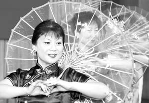 中新網(wǎng)1月19日電 據(jù)人民日報(bào)海外版報(bào)道,本月14日在俄羅斯首都莫斯科,幾名婦女在旅俄華僑華人華商新春招待會(huì)上表演花傘舞。