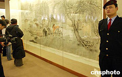近日,重張開業的北京懋隆藝術館,展示館藏精品《柳林十駿圖》,該圖長523cm,寬256cm設色絹本,由張善仔、張大千合作而成,是迄今張氏兄弟合作繪制的最大畫作,極具鑒賞與收藏價值。中新社記者:錢興強