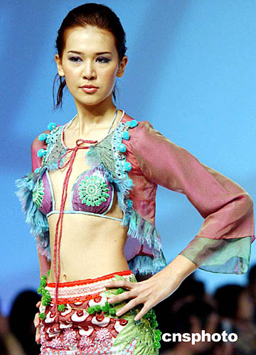 圖:模特演繹時裝設(shè)計師羅崢作品“綻放”