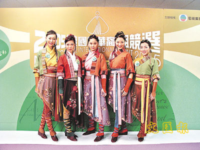 中新網1月21日電 據文匯報報道,參加今年華裔小姐的十二至十六號佳麗昨日在電視城試穿明朝造型,對于自己一身打女裝扮,十六號陳家嘉笑笑口地說:“穿起這些衣服好像要打功夫,可以說是穿什么衣服便變哪種人!”