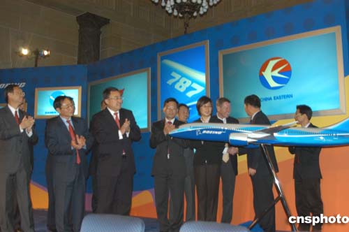 根據(jù)雙方當天在美國商務部簽署的框架協(xié)議,中國國航、東航、南航、海南航空、廈門航空、上海航空將從波音公司訂購六十架波音七E七飛機,按照平均目錄價格計算,此協(xié)議總價值七十二億美元。這批飛機將從二00八年開始陸續(xù)交付使用。