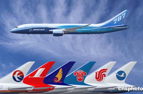中國(guó)東方、上海、海南、南方、國(guó)際、廈門六家航空公司1月28日訂購(gòu)60架波音最新型的寬體飛機(jī)--波音787,從而使中國(guó)成為波音787最大的啟動(dòng)用戶。這種飛機(jī)將在2008年投入使用。作者:余編