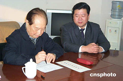 海協會長汪道涵在上海親筆書信致辜振甫家屬,委托即將赴臺參加辜振甫追思會的汪老個人代表孫亞夫(右)和李亞飛轉交。作者:葛鳳章
