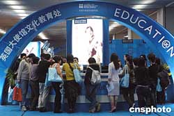 第十屆中國國際教育巡回展二月二十六日在北京開幕。眾多北京高校大學生在展臺前咨詢留學英國事宜。來自英國、法國、荷蘭香港等二十七個國家和地區的三百多所高校和教育機構組團參加了本次展覽。作者:鄒憲