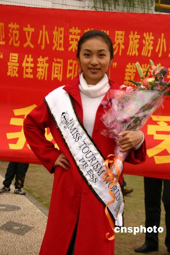 二月二十六日晚,第七屆世界旅游小姐總決賽在津巴布韋首都哈拉雷落幕。作為中國內(nèi)地首次選出的參賽代表,二十二歲的范文,憑借迷人的微笑、良好的氣質(zhì)和優(yōu)秀的語言能力等優(yōu)異表現(xiàn),受到世界各大新聞媒體的青睞,榮獲本次大賽的“最佳新聞媒體印象獎”單項獎,向世界展示了中國旅游和中國女性的新面貌。