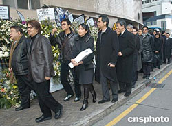 喪禮今早八時開始,以佛教儀式進行。靈堂內外放滿各界祭送的花圈。