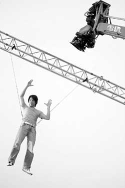 在陶喆新專輯《太平盛世》中的主要歌曲的伴奏下,陶喆第一次在鏡頭前表演了高空驚險動作。(郝曉楠)