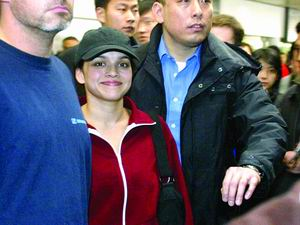 剛剛結束在漢城的個唱,諾拉·瓊斯及樂隊、工作人員一行20多人直接飛到北京。由于她一向低調,故機場除了幾家媒體接機外,未見歌迷。在飛機落地半個多小時后,頭戴黑色棒球帽、身著紅色運動衣的諾拉·瓊斯在工作人員的包圍中走出了安檢口。等候多時的攝影記者們剛舉著機器沖上前,就被主辦方唐西文化請來的4名保衛人員攔住。諾拉·瓊斯身邊的一男子立即把嬌小的她護在臂彎里,客氣地拒絕了記者的拍照。原本滿臉倦意的諾拉·瓊斯露出了歉意的笑容,在前呼后擁中直接上了等候在外的別克車上。