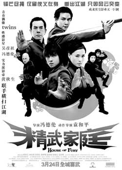 中新網3月15日電 據北京娛樂信報報道,2005年以來,首部港產引進內地的動作大片《精武家庭》將在本月24日全面出擊內地市場,這部電影不僅匯集了黃秋生、馮德倫、吳彥祖、TWINS、王敏德、何超儀等超強的明星陣容,而且還請來了動作大師袁和平出任動作導演。